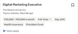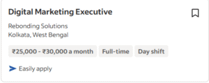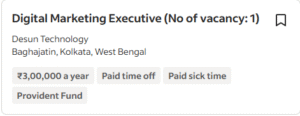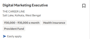 Currently, there are 231 digital marketing executive jobs are availible only in kolkata. You can follow this screenshot to get the next jobs for you.